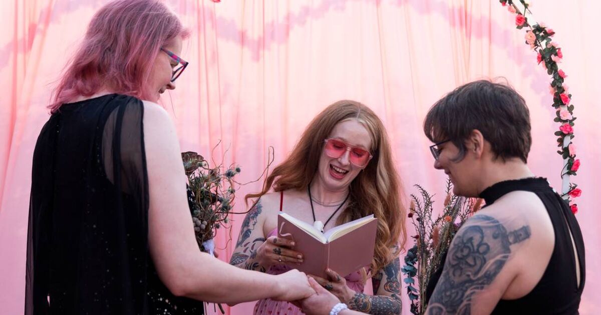 The duo charged $100 per wedding, with the proceeds going towards the Harriet Hancock Center’s Gender Marker Fund, a fund to help transgender, non-binary, and intersex people change their legal name and assigned gender on government-issued documents.