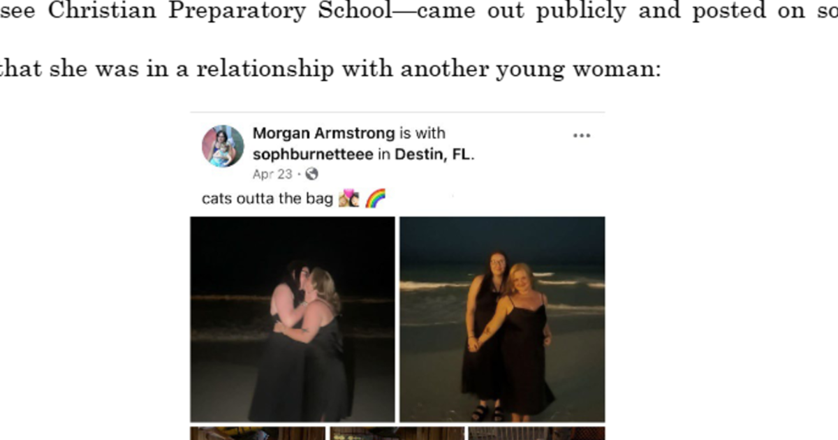 Morgan Armstrong, a senior at Tennessee Christian Preparatory School in Cleveland, came out in April in a post to her social media accounts. The teen uploaded a collection of photos with her girlfriend and a caption that read, “Cats outta the bag,” along with a rainbow emoji.
