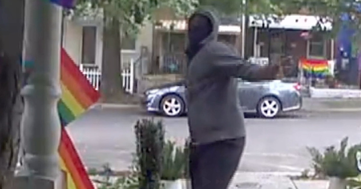 On Friday, around 12:30 p.m., Addam Schauer-Mayhew was seated on his couch watching tennis when his home camera recorded a masked individual walking up to he and his husband’s house — which was decorated in rainbows for Pride. The masked individual then threw a large rock through their living room window, hitting Schauer-Mayhew in the head.